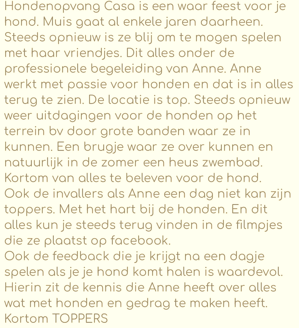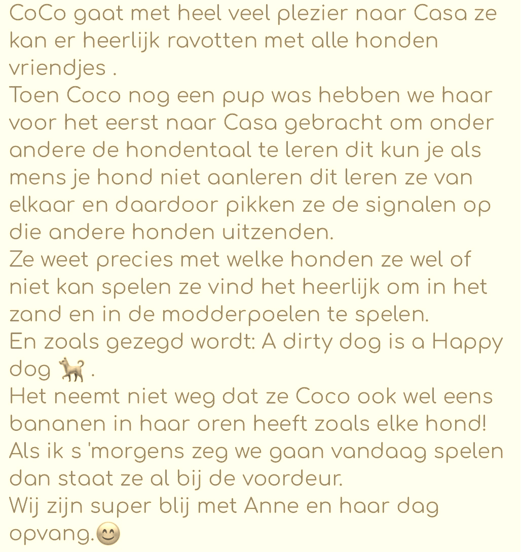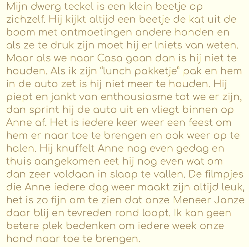 Ik hoop jou en je lieve viervoeter snel te zien bij Hondendagopvang Casa.