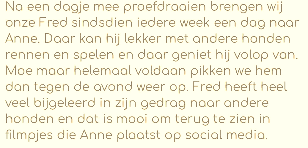 In al die jaren heb ik opvang geboden voor honderden honden, wat ik nog steeds met heel veel liefde doe. Met ingang van januari 2025 kwamen er een aantal extra plekjes bij in de dagopvang omdat veel nieuwe baasjes stonden te wachten op een plekje.