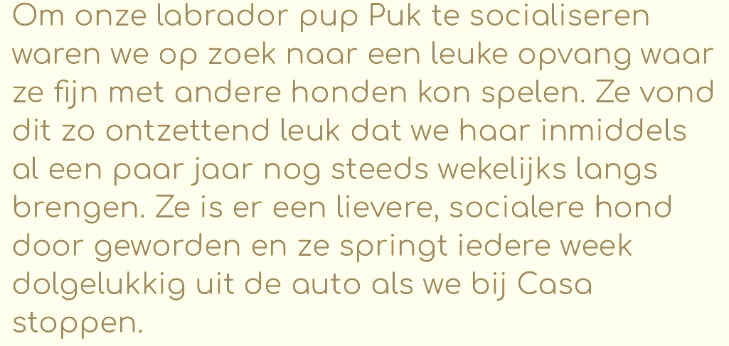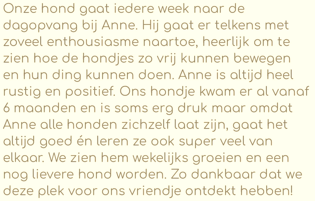 Als je wil dat jouw pup een hele dag lekker los mag spelen in een veilige en vertrouwde omgeving.